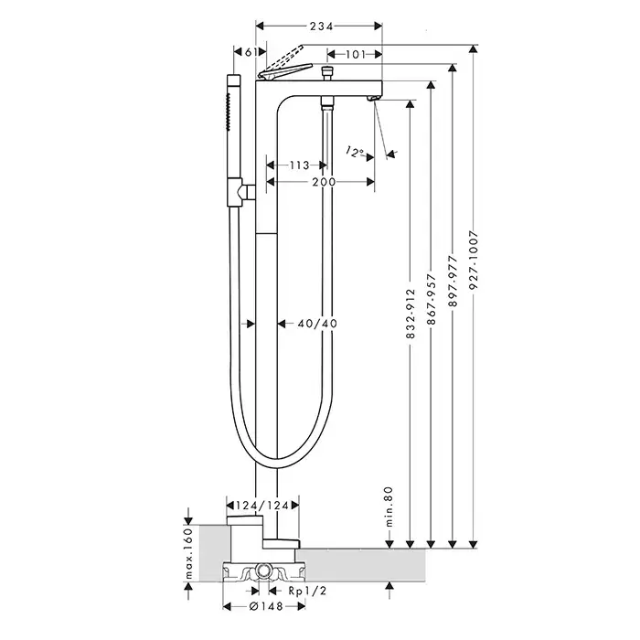 Axor Citterio Смеситель для ванны, напольный, с ручным душем, текстура, цвет: шлифованное красное золото