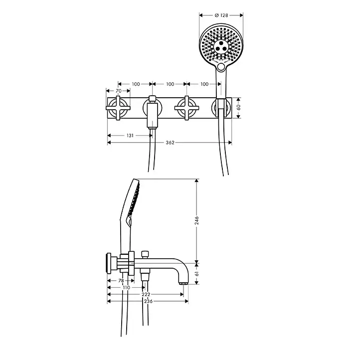Axor Citterio Смеситель для ванны, встраиваемый, с ручным душем, панель, цвет: шлифованное золото