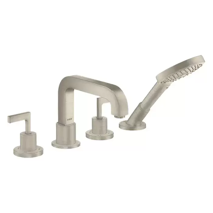 Axor Citterio Смеситель на борт ванны, на 4 отв., ручка: рычаг, с ручным душем, цвет: шлифованный никель