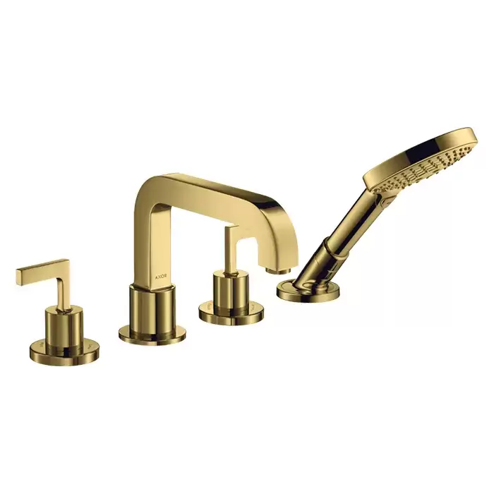 Axor Citterio Смеситель на борт ванны, на 4 отв., с ручкой: рычаг, с ручным душем, цвет: полированное золото