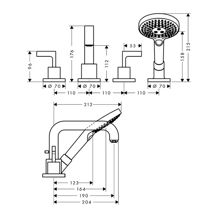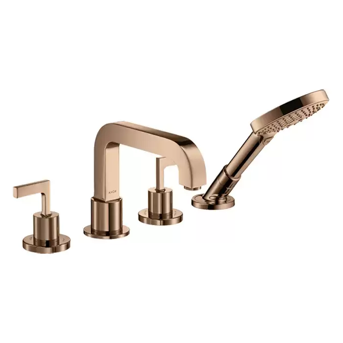 Axor Citterio Смеситель на борт ванны, на 4 отв., с ручкой: рычаг, с ручным душем, цвет: полированное красное золото
