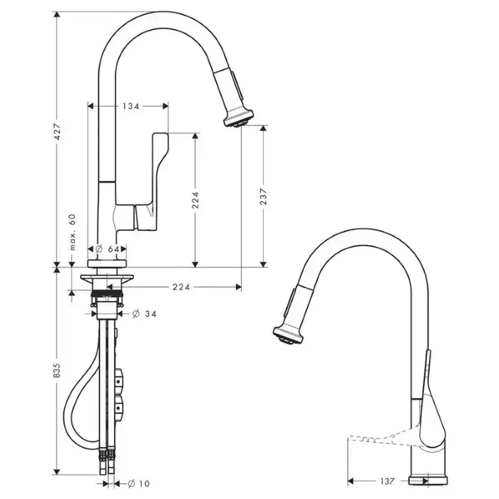 Axor Citterio Выдвижной, однорычажный кухонный смеситель, цвет: хром