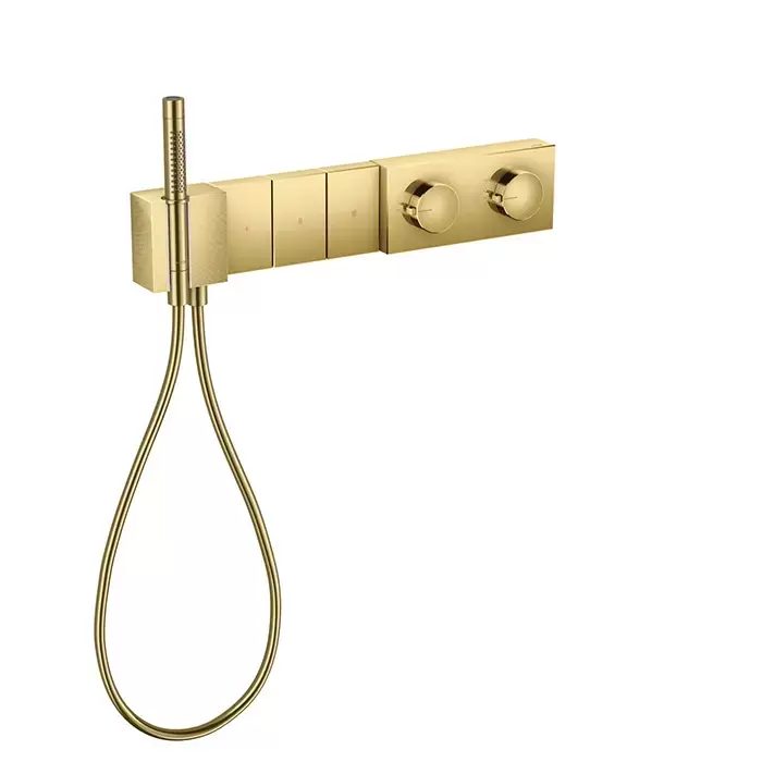 Axor Edge Смеситель для душа 540/100, встраиваемый, термостат, на 3 источника с ручным душем, алмазная огранка, внешняя часть, цвет: золото