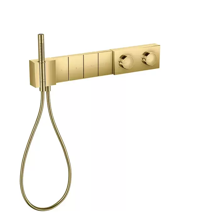 Axor Edge Смеситель для душа 610/100, встраиваемый, термостат, на 4 источника, с ручным душем, внешняя часть, цвет: золото