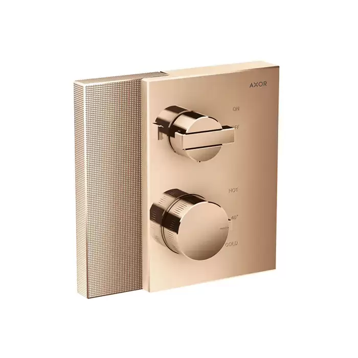 Axor Edge Смеситель для душа, встраиваемый, термостат, на 1 источник, с запорным вентилем, алмазная огранка, внешняя часть, цвет: красное золото