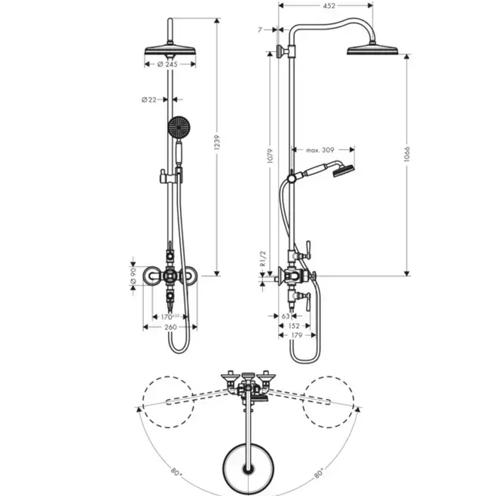Axor Montreux Душевая стойка с термостатом и верхним душем, цвет: никель шлифованный