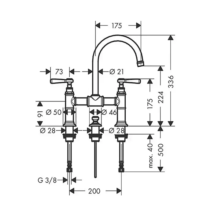 Axor Montreux, Смеситель для раковины 220,с двумя рычаговыми рукоятками, с донным клапаном, цвет: хром