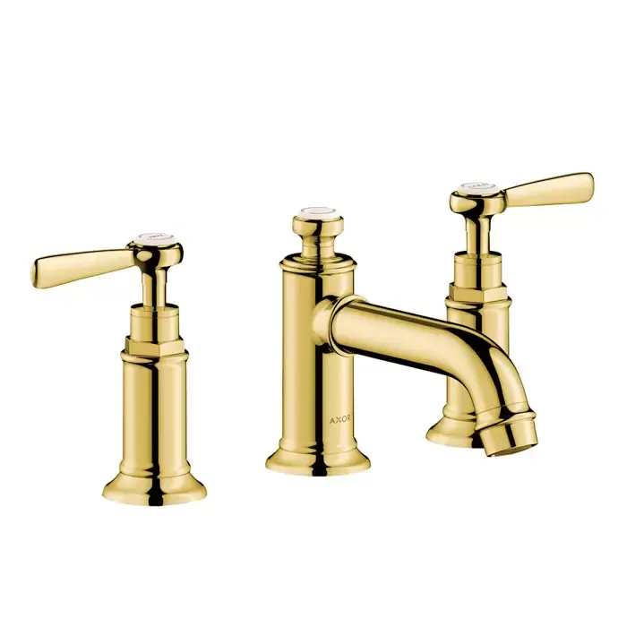 Axor Montreux Смеситель для раковины, на 3 отв., излив 143мм, с донным клапаном (рычажные рук.), цвет: полированное золото
