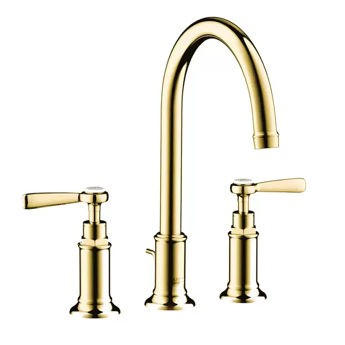 Axor Montreux Смеситель для раковины, на 3 отв., излив 175мм, с донным клапаном (рычажные рук.), цвет: полированное золото