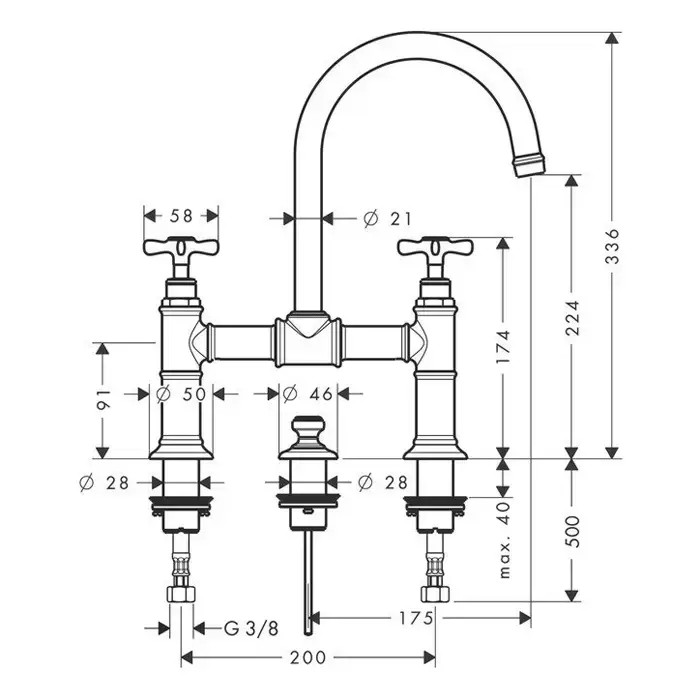 Axor Montreux Смеситель для раковины, на 3 отв., излив 175мм, с донным клапаном, цвет: полированное золото