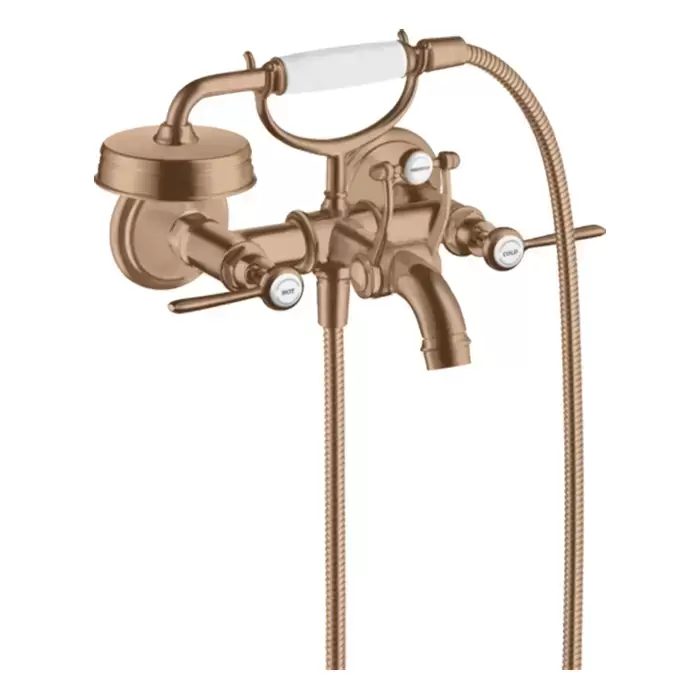 Axor Montreux Смеситель для ванны, настенный, с ручным душем, ручка: рычаг, цвет: шлифованное красное золото