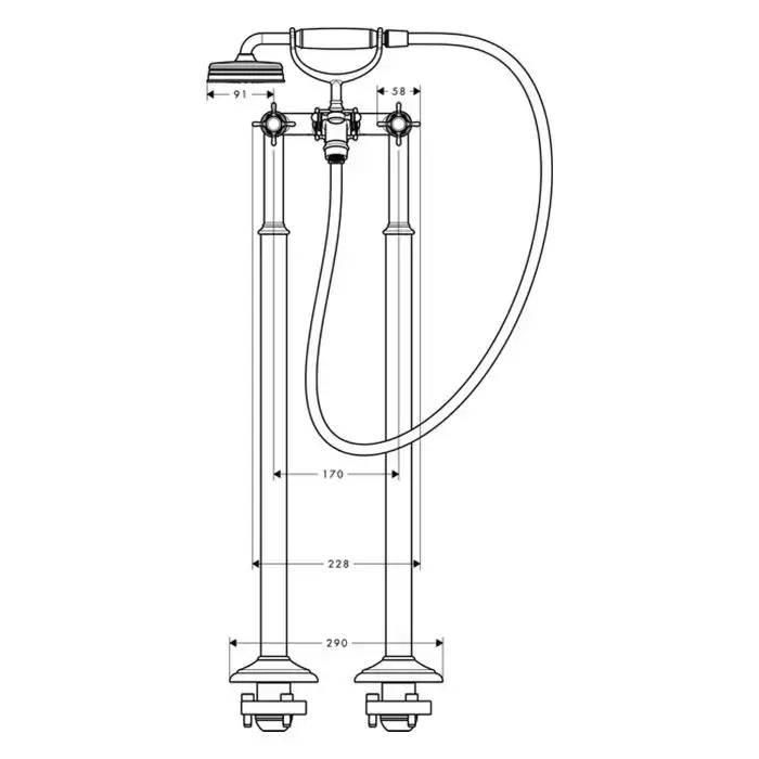 Axor Montreux, Смеситель для ванны, с двумя рукоятками, напольный, внешняя часть, цвет: хром