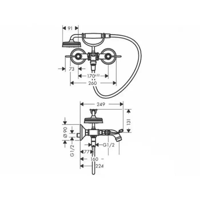 Axor Montreux, Смеситель для ванны с двумярычаговыми рукоятками, ВМ, цвет: хром
