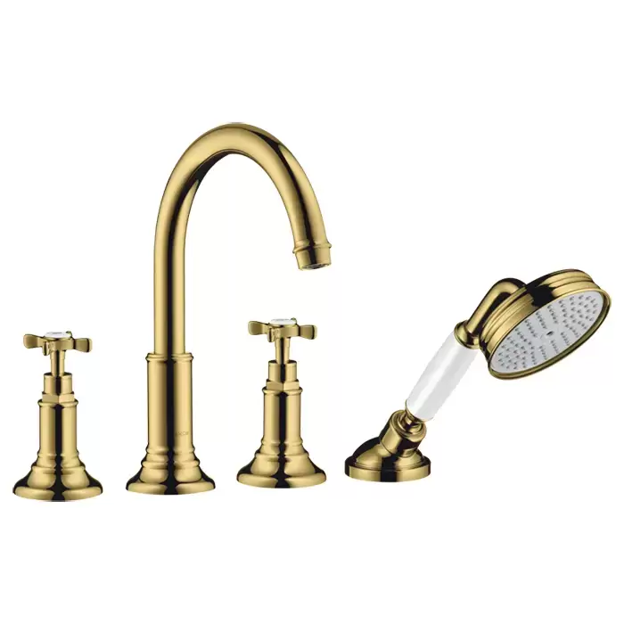 Axor Montreux Смеситель на борт ванны, на 4 отв., с ручным душем, цвет: полированное золото