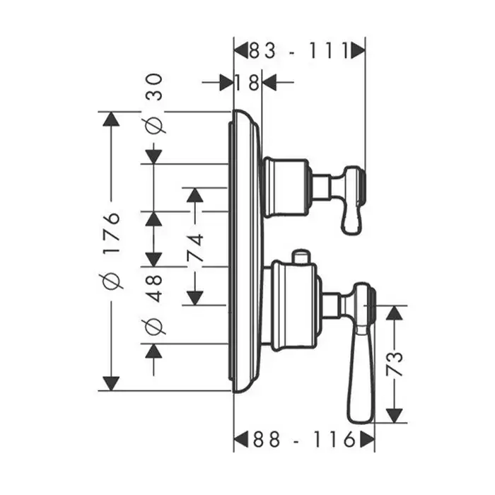 Axor Montreux Термостат с запорным/переключающим вентилем, СМ, 2 потребителя (рычажные рук.), внешняя часть, цвет: полированное золото