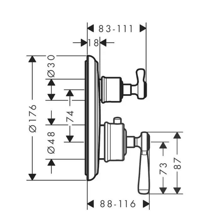 Axor Montreux, Термостат с запорным вентилем, СМ, с рычаговой рукояткой, внешняя часть, цвет: никель шлифованный