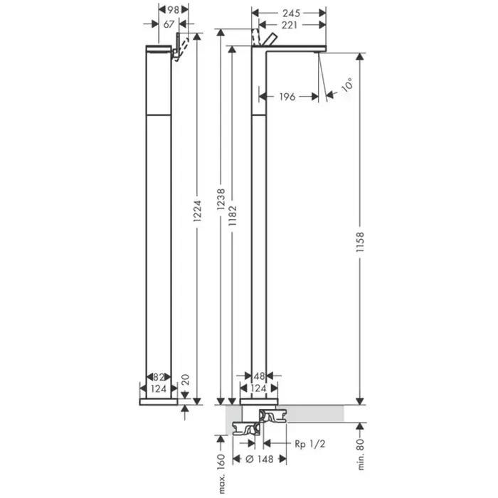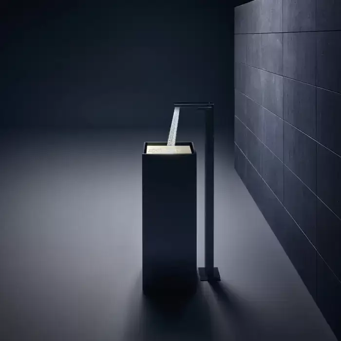 Axor MyEdition Смеситель для раковины, напольный, на 1 отв., излив 245мм, с донным клапаном, внешняя часть, цвет: хром/черное стекло