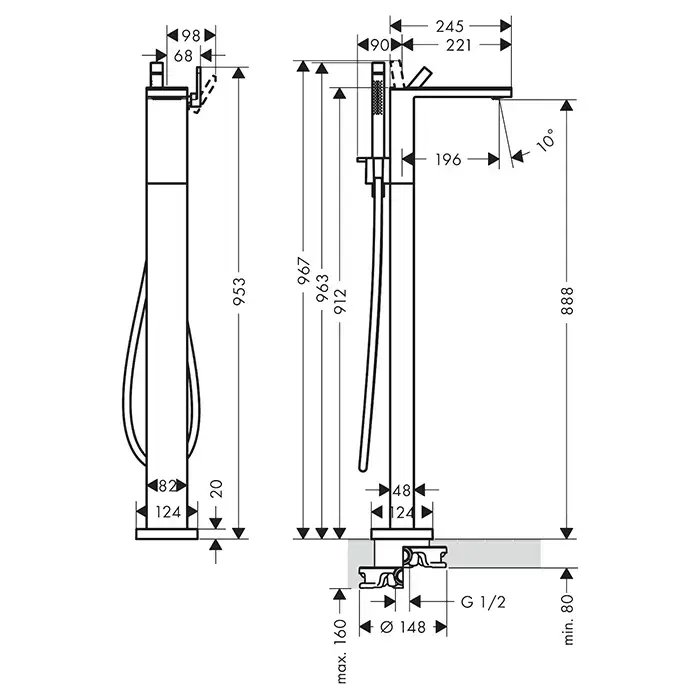 Axor MyEdition Смеситель для ванны, напольный, с ручным душем, без панели, цвет: шлифованная бронза