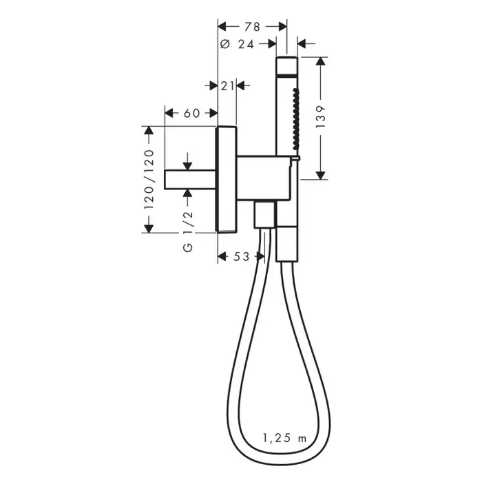 Axor Набор ручного душа: лейка с 2мя режимами, шланг 1,25 м, водорозетка, держатель лейки, цвет: хром (наружная часть)