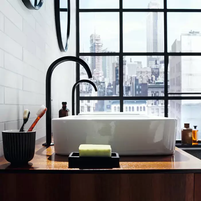 Axor One Смеситель для раковины, 1 отв., излив h260мм, Select, со сливом push-open, цвет: черный матовый