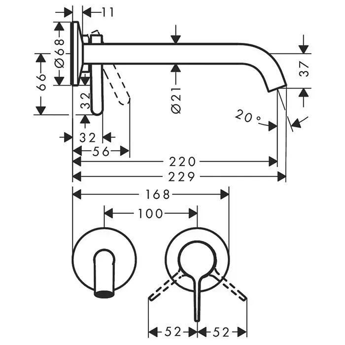 Axor One Смеситель для раковины, встраиваемый, излив 220 мм, внешняя часть, цвет: хром