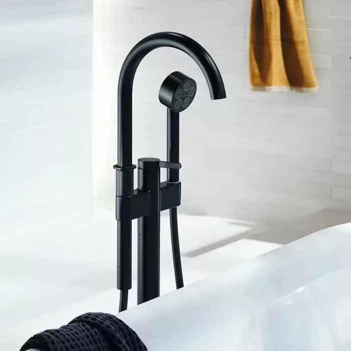 Axor One Смеситель для ванны, напольный, с душевым гарнитуром, внешняя часть, цвет: черный матовый