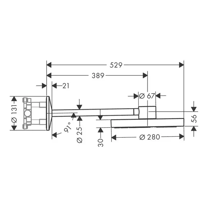 Axor One Верхний душ Ø280 мм., с настенным держателем 389 мм., 2 режима, цвет: шлифованное золото