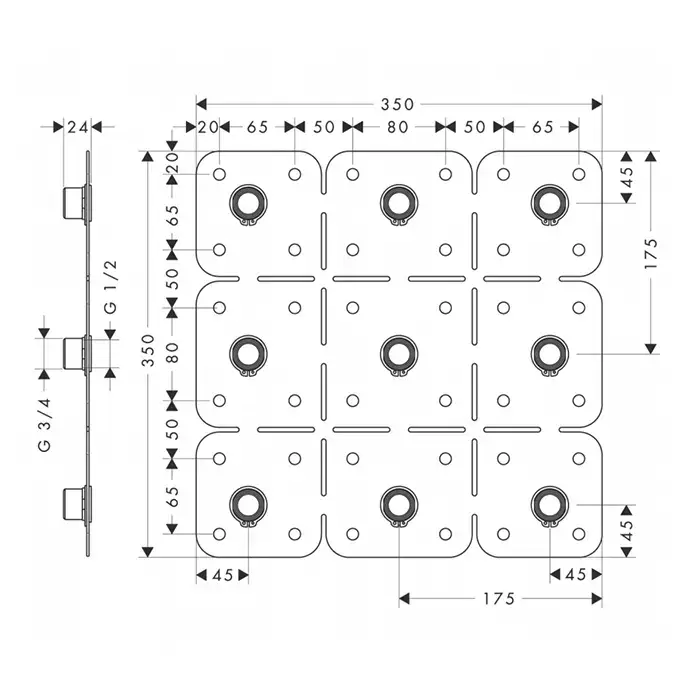 Axor ShowerCollection Монтажный комплект для совместного монтажа душевых модулей 120х120мм, ½’