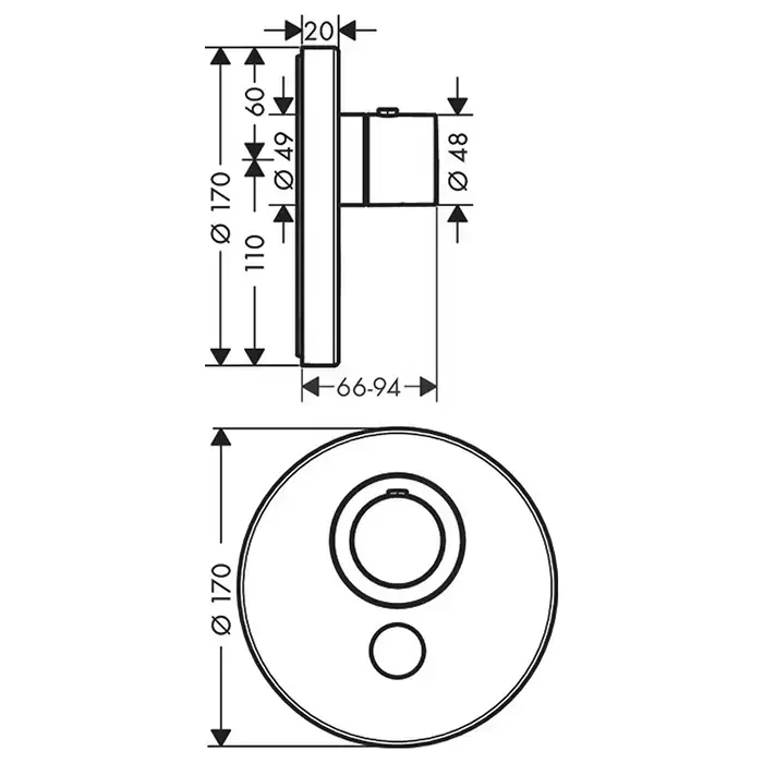 Axor ShowerSelect Встраиваемый термостат для душа, 1 поток, с ручным душем, внешняя часть, цвет: шлифованный никель