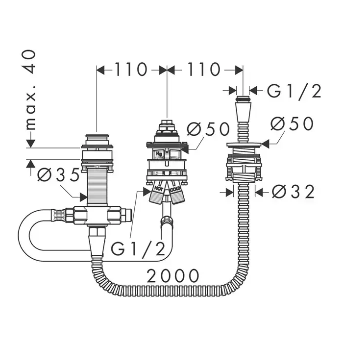 Axor Скрытая часть смесителя на 3 отверстия на край ванны