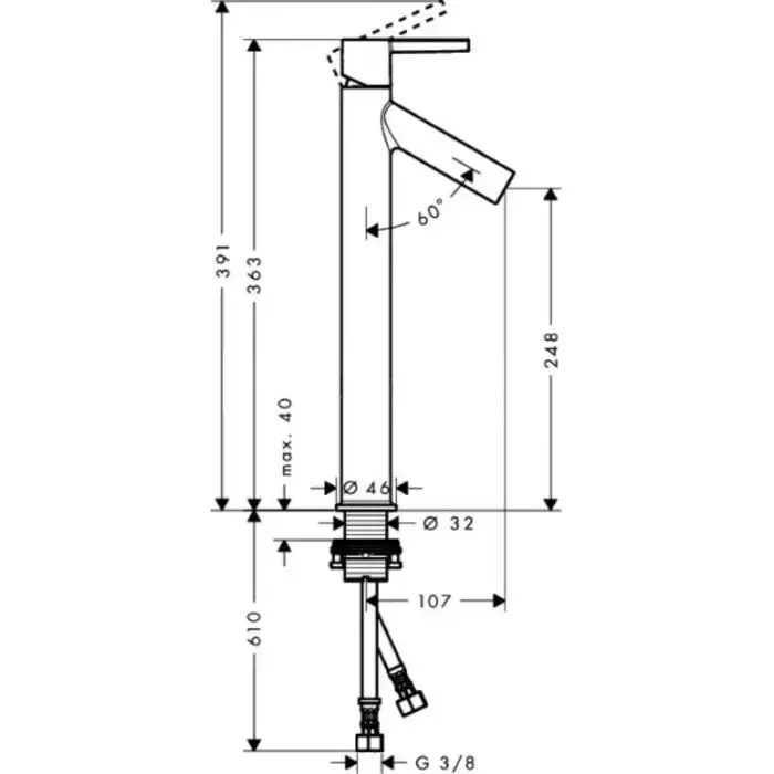Axor Starck Однорычажный смеситель 250 для мойки с ручкой рычага, без тяги, цвет: хром