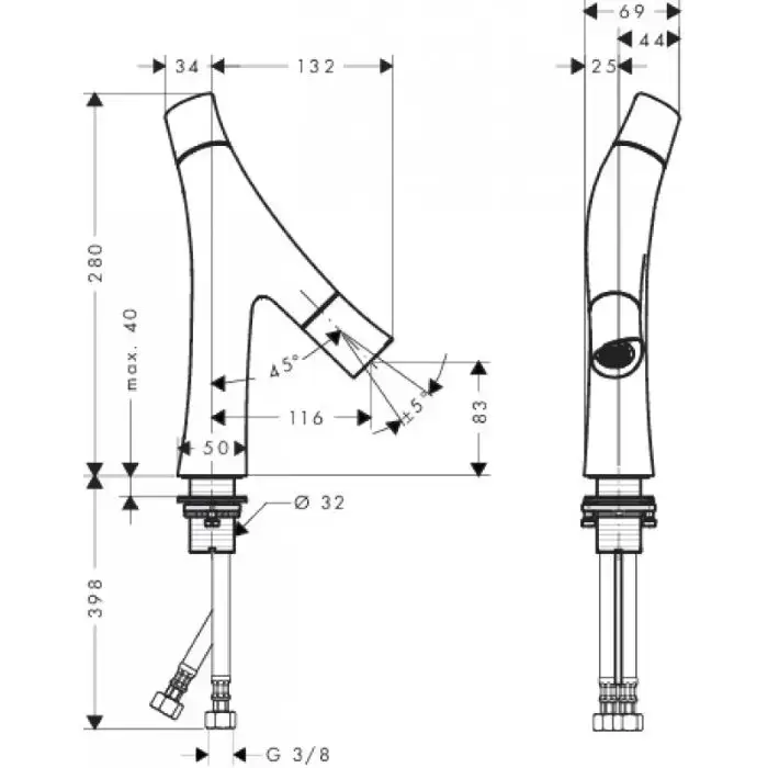 Axor Starck Organic, Смеситель без тяги, для раковины, цвет: хром
