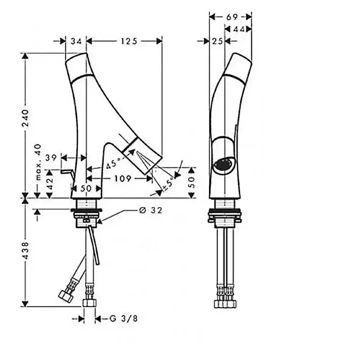 Axor Starck Organic, Смеситель для раковины, на 2 ручки, цвет: хром