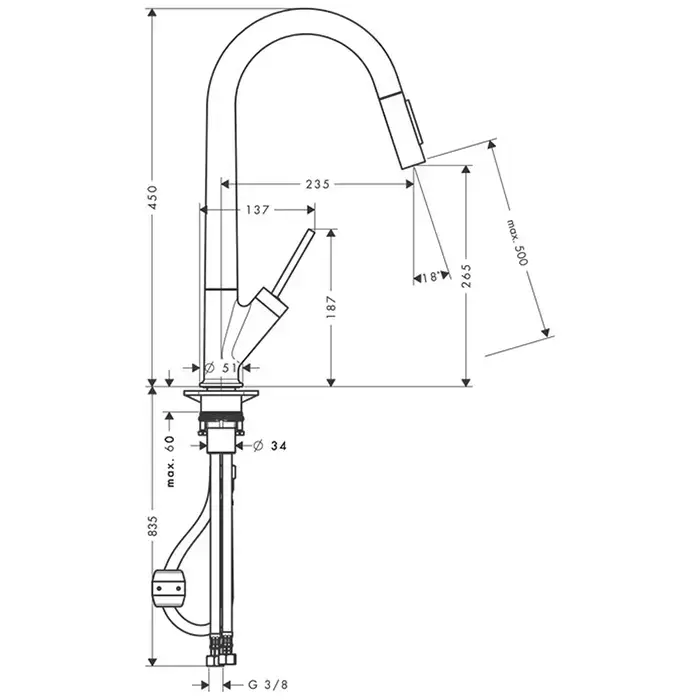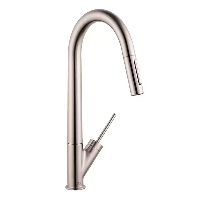Axor Starck Смеситель для кухни, однорычажный, на 1 отв, с выдвижным душем, излив 235мм, цвет: под сталь
