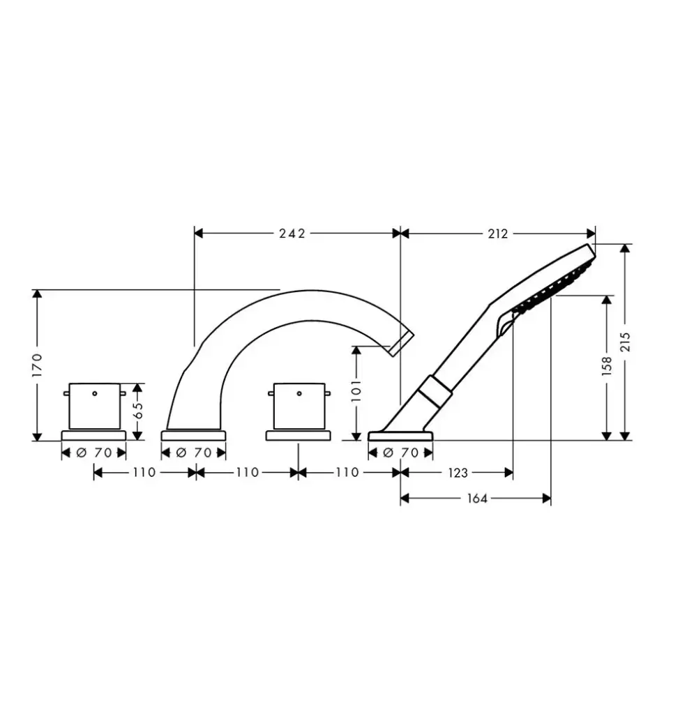 Axor Starck, Смеситель для ванны, на 4Axor Starck, отверстия, монтаж на плитку, внешняя часть, цвет: хром