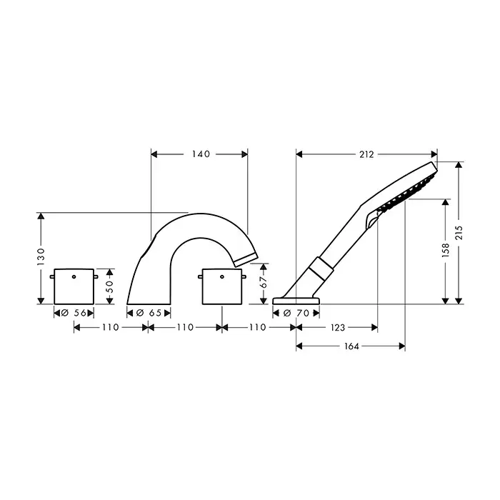Axor Starck Смеситель на борт ванны, на 4 отв., с ручным душем, цвет: шлифованная медь
