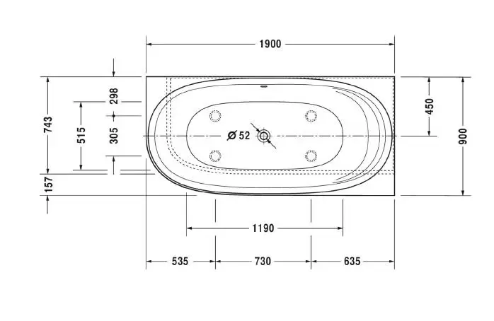 Bathtub Cape Cod Ванна угол справа 190x90см с бесшовной панелью и ножками, с одним наклоном для спины, цвет: белый