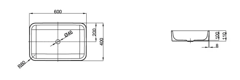 Bette Art Раковина 60х40х11 см, без отв., сталь, цвет: белый