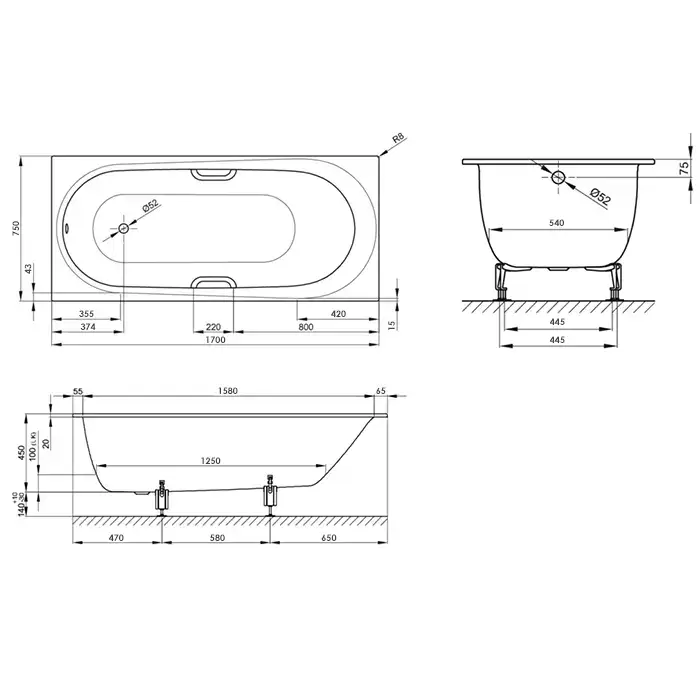 Bette Comodo Ванна 170х75х45см., встраиваемая, с шумоизоляцией, цвет: белый