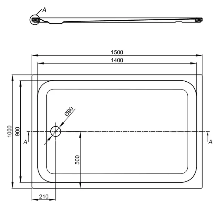 Bette Душевой поддон 150х100 см, супертонкий 3,5 см, с отв-м слива d=9см, цвет: белый