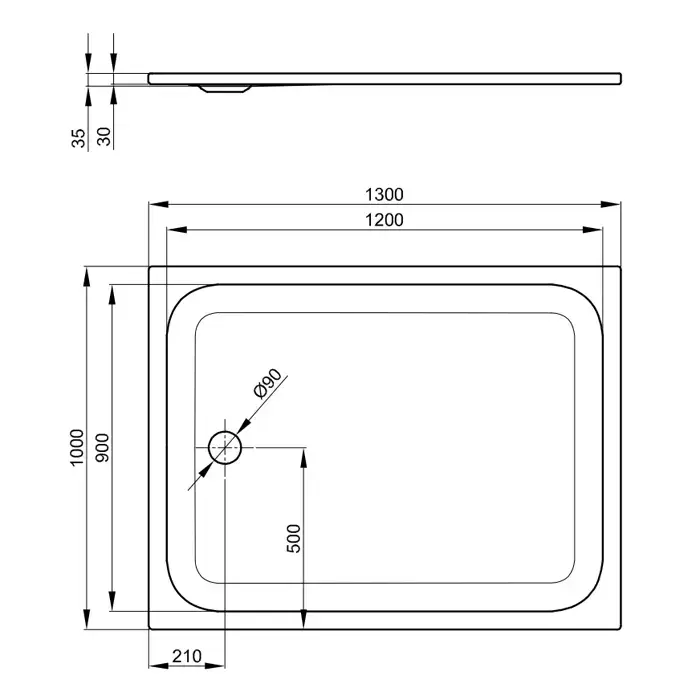 Bette Душевой поддон прямоугольный 130х100 см, суперплосский 3,5 см, D9см, цвет: белый