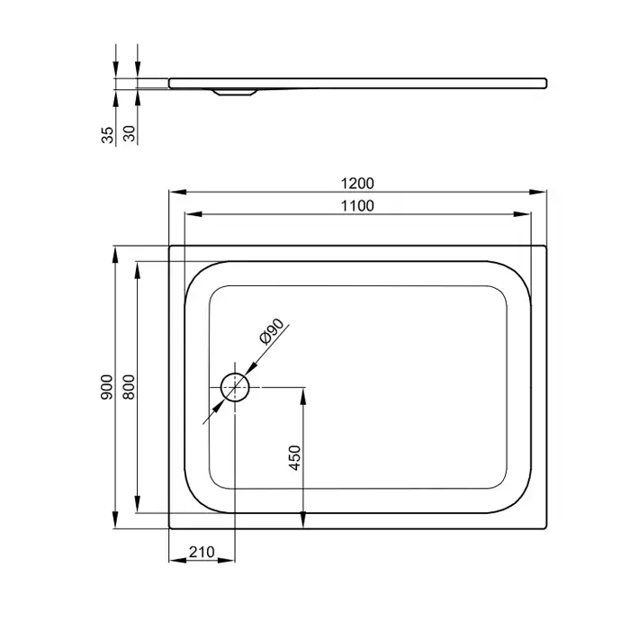 Bette Душевой поддон прямоугольный суперплосский 120х90хh3,5см, D=9см, цвет: белый