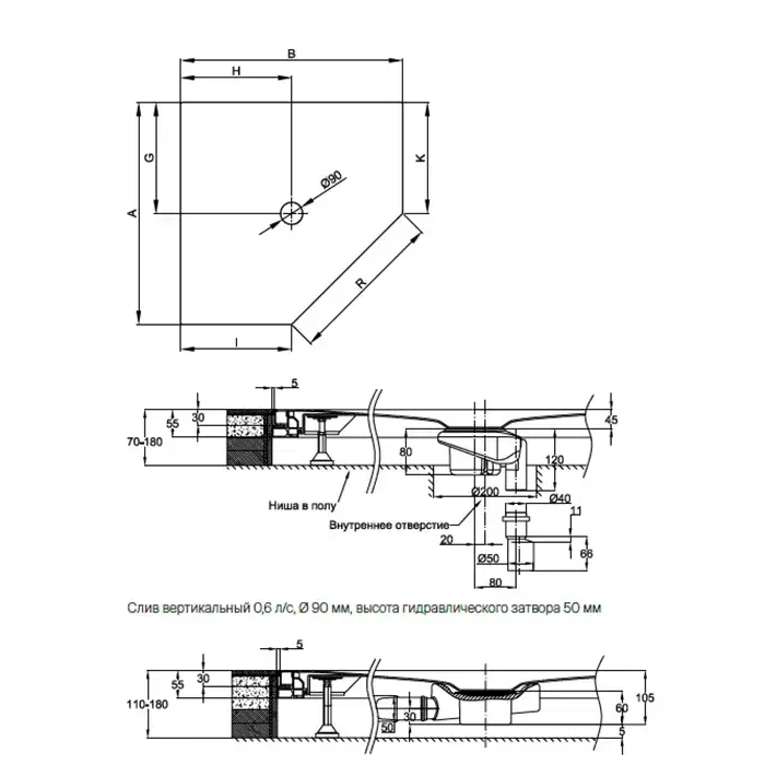 Bette Floor Caro Душевой поддон 100х100 см, пятиугольный, D9см, с шумоизоляцией, цвет: белый