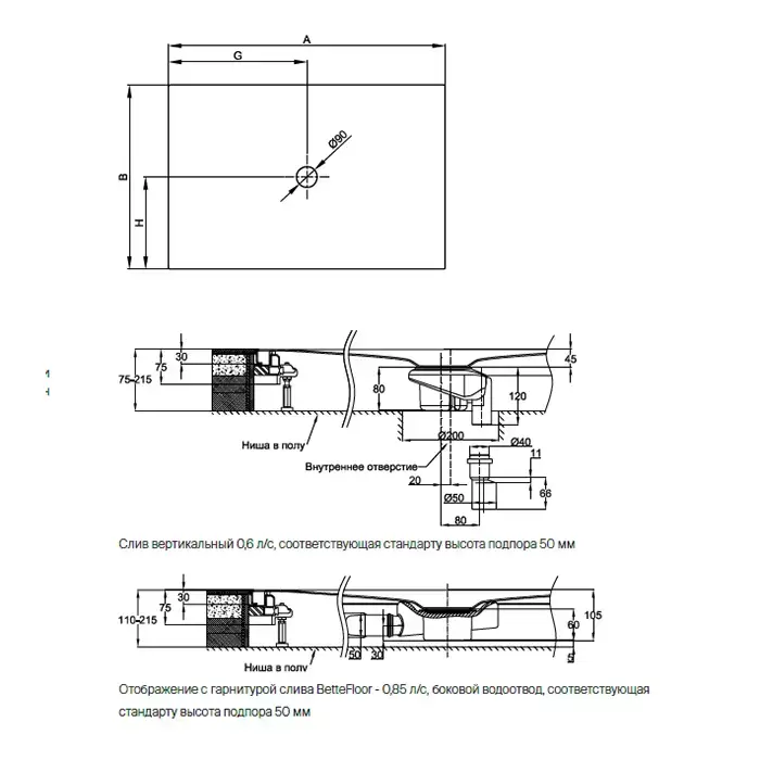 Bette Floor Душевой поддон 80х80х3.5 см, квадратный, D9см, цвет: белый