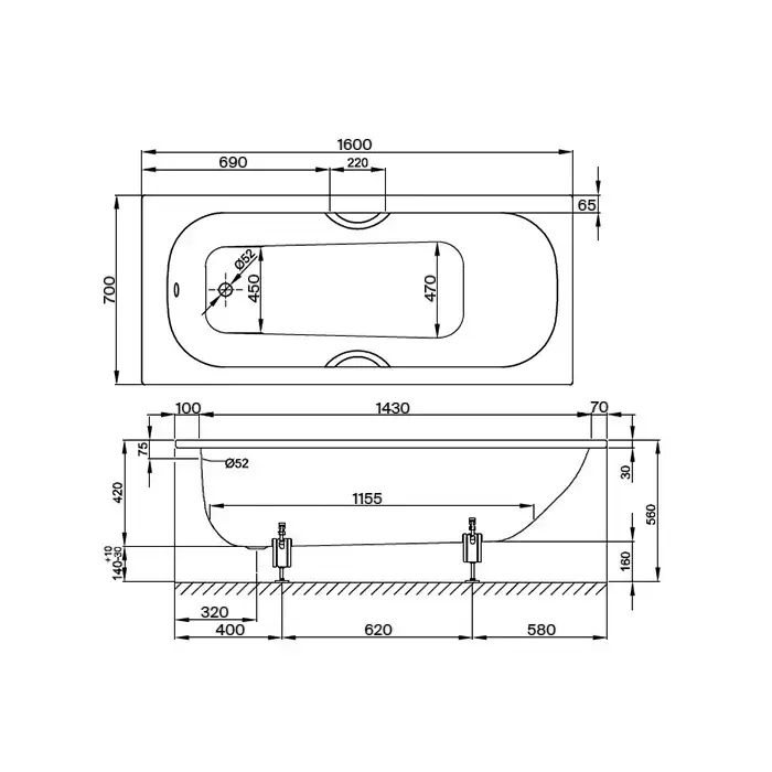 Bette Form 2020 Ванна 160х70х42см., с шумоизоляцией, BetteАнтислип Sense, цвет: белый