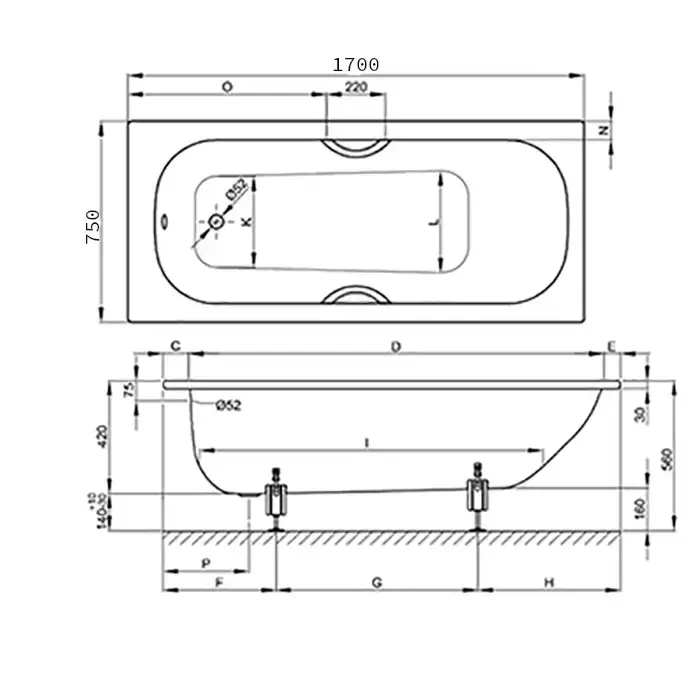 Bette Form 2020 Ванна с шумоизоляцией 170х75х42см, BetteGlasur® Plus, с комплектом ножек, встраиваемая, цвет: белый