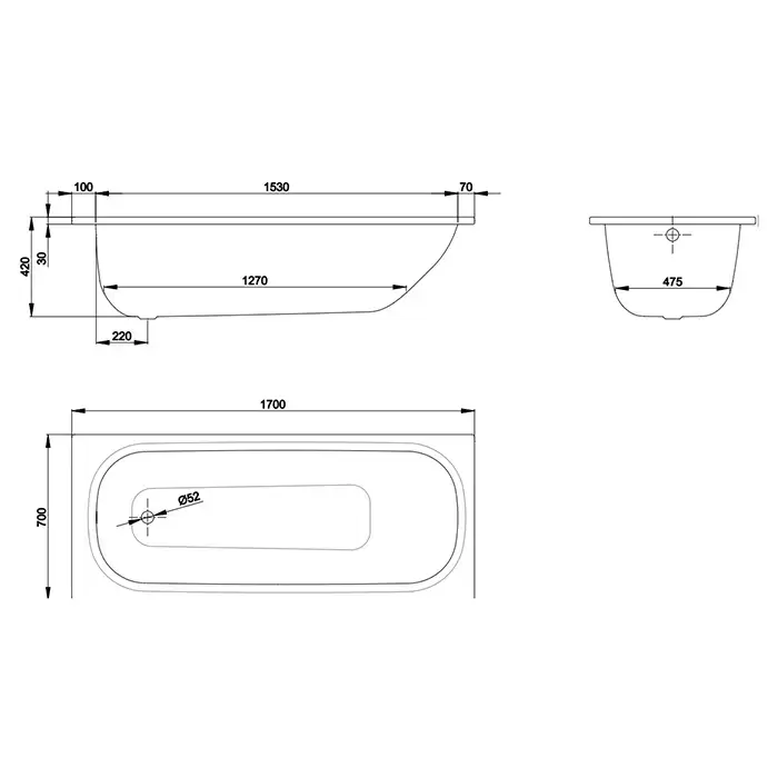 Bette Form 2020 Ванна встраиваемая 170х70х42см., цвет белый