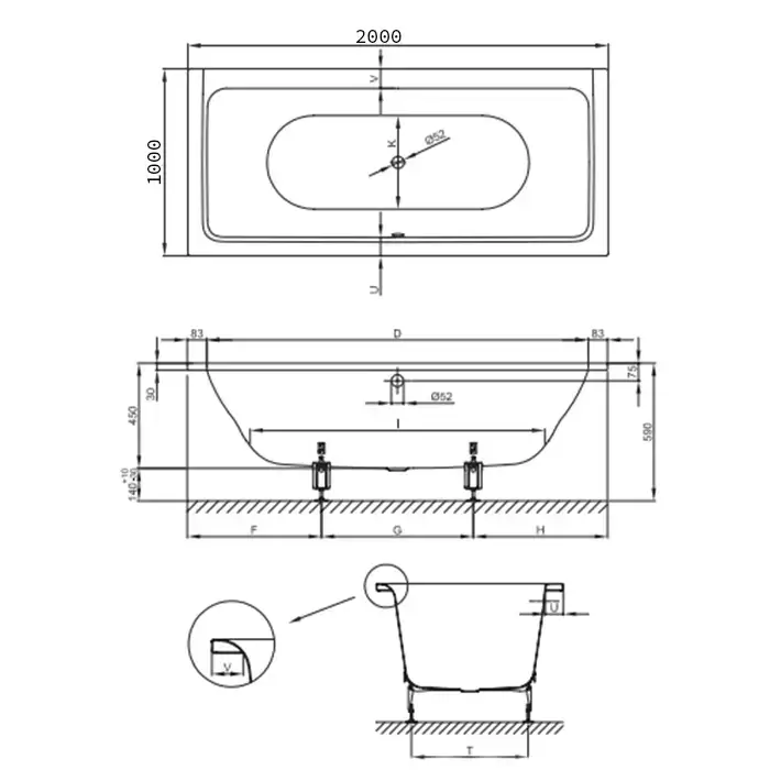 Bette Free Ванна встраиваемая, 200х100х45см, с шумоизоляцией и антискольжением BetteGlasur® Plus, цвет: белый
