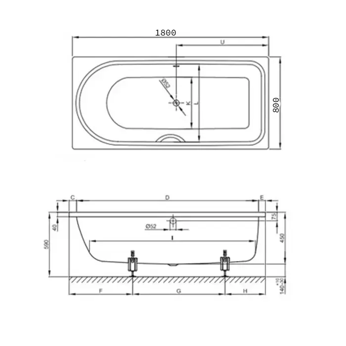 Bette Ocean Ванна с шумоизоляцией пристенная, 180х80х45, перелив сзади, BetteАнтислип Sense, цвет: белый