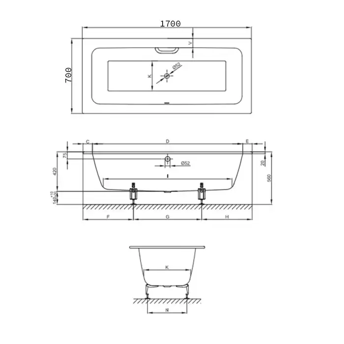 Bette One Ванна с шумоизоляцией встраиваемая, 170х70x42см BetteGlasur® Plus, цвет: белый